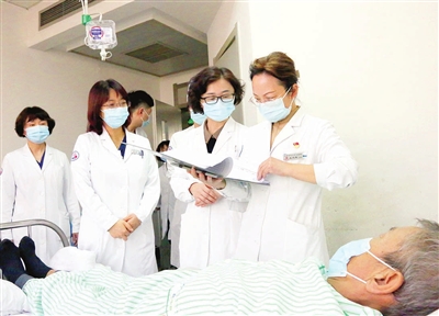 王凤梅(右一)带领消化(肝病)科专家团队为患者定制个性化治疗方案。本报记者 王倩 摄