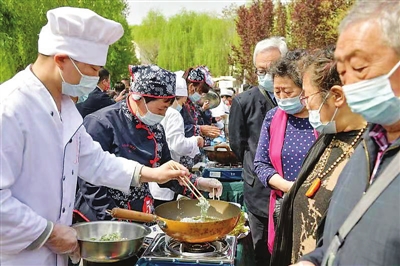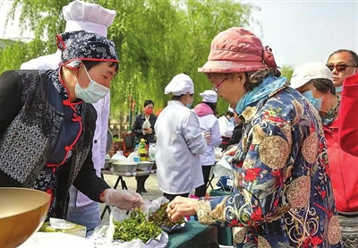 2022年4月29日,毛家峪村举办山野菜文化节,厨艺比拼吸引游客。