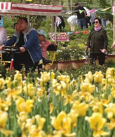 杨津庄镇国色天香牡丹园内有一片郁金香花海。