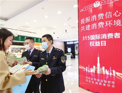 昨日,河东区市场监管局组织人员走进辖区商超,向商家开展“诚信经营、放心消费”主题宣传。