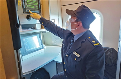 在北京开往天津滨海新区的高铁上,有一间约2平方米的监控室,墙上、操作台上布满了屏幕、按键以及紧急刹车装置。记者在这里见到了京唐、京滨城际铁路的随车机械师李海仓。