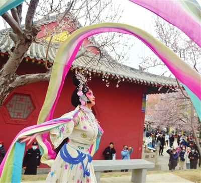 北运河畔桃花堤上,微风轻拂,桃红柳绿,人们三五成群地赶赴一场浪漫的春日之约。诗意灵动的粉红花海内,汉服和非遗展示、书法笔会等特色活动吸引不少市民热情参与。据了解,运河桃花节开幕后,游客除了可以游园赏花,还可以乘坐免费巴士到桃花堤、西沽公园、陆家嘴中心、水游城等会场内参观桃花摄影展、观看主题文艺演出、听相声、品尝津味儿美食等,一键解锁吃喝玩乐一站式享受。