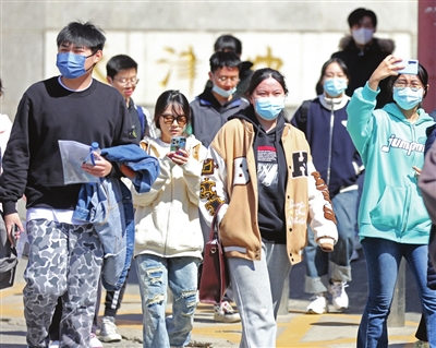 图为考生完成当天考试走出考场。 本报记者 谷岳 摄