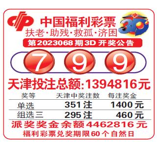 中国福利彩票第2023068期3D开奖公告