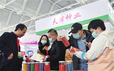 第十四届中国国际种业博览会暨第十九届全国种子信息交流与产品交易会在天津市开幕,图为展会现场。新华社发