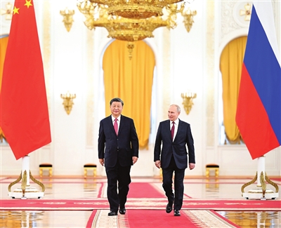 习近平指出,中俄互为彼此最大邻国,同俄罗斯巩固和发展长期睦邻友好关系,符合历史逻辑,是中方的战略抉择,不会因一时一事而改变。自我10年前首次对俄进行国事访问以来,中俄双方相互尊重、相互信任、互利互惠,两国关系历久弥坚,呈现更加全面、更加务实、更具战略性的特点。此访期间,我们车队途经之处,很多俄罗斯民众自发挥手致意,让我深切感到中俄关系具有深厚民意基础。不管国际风云如何变幻,中方都将继续致力于推进中俄新时代全面战略协作伙伴关系。我此次对俄罗斯的国事访问是友谊之旅、合作之旅、和平之旅。中方愿同俄方一道,继往开来,丰富中俄新时代全面战略协作伙伴关系内涵,为两国人民创造更多福祉,为促进人类进步事业作出更大贡献。