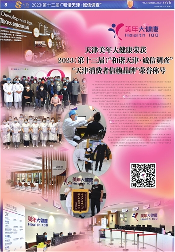 提振消费信心、守护消费安全。作为深耕天津市场十余年的老品牌,天津美年大健康凭借过硬的医疗品质、不断提升的服务水准以及企业的社会责任担当,在2023年(第十三届)“和谐天津·诚信调查”活动中一举摘得“天津消费者信赖品牌”荣誉称号,连续八年在该系列活动中获此殊荣。