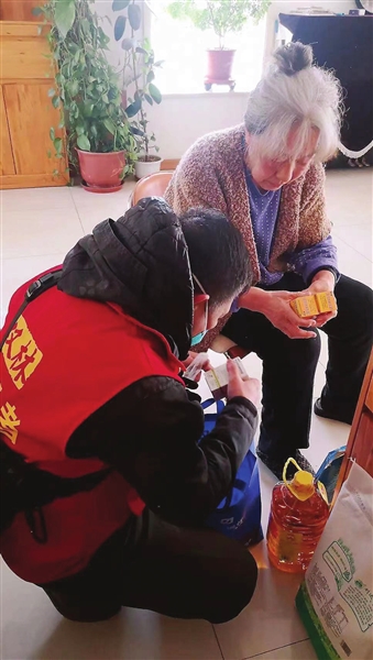 当志愿者将药品和米、面、油一同送到老人家中时,老人激动地说:“你们就像我的亲人一样照顾我,太感谢啦!”