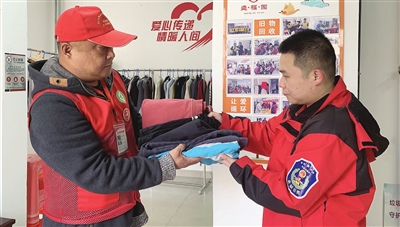 郑春起(左)参加志愿活动。