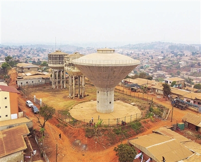 3月2日在喀麦隆西部大区巴富萨姆拍摄的中企援建的水塔(无人机照片)。