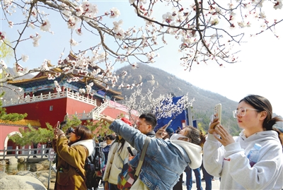 昨天上午,天津乡村全域旅游消费季启动仪式暨第十八届盘山开山节在我市盘山景区拉开序幕。图为盘山“开山”,吸引众多游客。本报记者 钱进 通讯员 杨天宇 摄