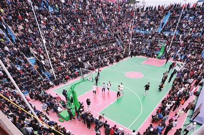 3月25日,村民们在决赛前抵达现场观看暖场比赛(移轴镜头拍摄)。 当日,贵州省首届“美丽乡村”篮球联赛总决赛在黔东南州台江县台盘村开打。这项由台盘村“六月六”吃新节篮球赛发展而来的赛事因为火热的现场氛围和“接地气”的办赛风格,在2022年“火爆全网”,被网友亲切地称为“村BA”。新华社发