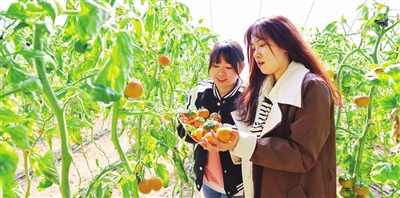 图为近日,游客在蓟州区肖辛庄村智源家庭农场内采摘草莓、西红柿等,乐享春日美好时光。