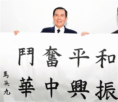 马英九题写“和平奋斗 振兴中华”,以志纪念。 新华社发