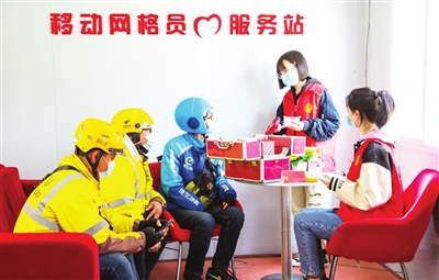 近日,西青区张家窝镇京福里社区核酸小屋变身暖心驿站,成为外卖骑手等新就业群体的避风港。暖心驿站提供饮水、充电、歇脚等服务。不少骑手还被招募担任“移动网格员”,为基层治理增添新的力量。