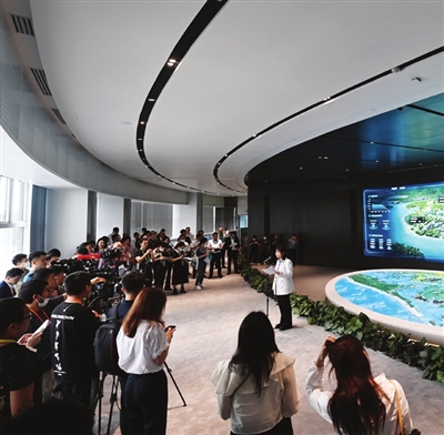 采访博鳌亚洲论坛2023年年会的媒体记者探访博鳌零碳运行管理中心。