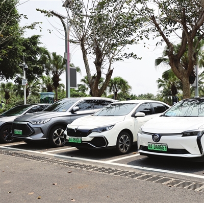 在博鳌亚洲论坛国际会议中心停车场拍摄的新能源车。