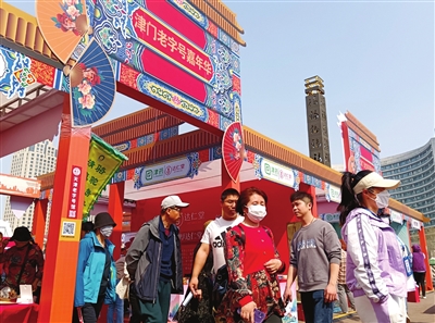 山海关汽水、津酒、桂顺斋,海鸥、盛锡福、郁美净,达仁堂、隆顺榕、京万红……古文化街前的亲水平台上,老字号嘉年华市集正在“火热开张”,40余家老字号品牌摆出“国潮摊位”,进行3天展卖及现场互动体验,非遗项目展区进行现场展示,邀请古文化街内民俗项目参展,有的吃、有的玩、有的买,路人、游客逛得尽兴,吃得过瘾,买得开心。