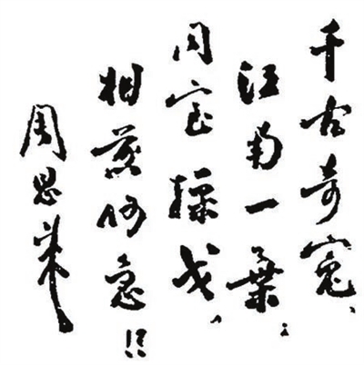 书为心画。周恩来的这幅题字用笔艰涩,结构险绝,章法跌宕,满含悲愤之情。