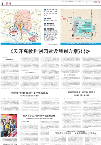 按照规划,天开园将着力构建“一核两翼”、辐射全市的总体空间发展布局,即以南开区环天南医大片区为核心区,以西青区大学城片区为西翼拓展区,以津南区海河教育园区片区为东翼拓展区,在功能上形成以研发孵化为主的“一核”和以研发转化产业化为主的“两翼”。