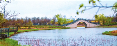 图为津南区海河教育园湿地公园内。