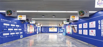 “国家安全”主题车站在地铁长虹公园站落成。 照片由神铁二号线(天津)轨道交通运营有限公司提供