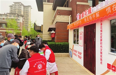 四季花城社区“网格驿站”微网格员正在进行积分兑换和义诊活动,让更多居民成为社区治理的参与者和受益者。 通讯员 聂国雅 本报记者 潘立峰 摄