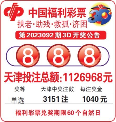 中国福利彩票第2023092期3D开奖公告