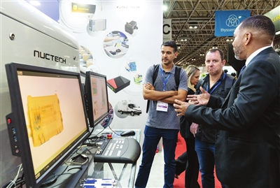 同方威视技术股份有限公司展台的工作人员介绍一款安保产品。 新华社发