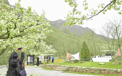 梨木台风景区坐落于蓟州区最北部山区,毗邻世界文化遗产黄崖关长城、国家自然保护区八仙山景区,有“天津北极”之称。总面积1000多公顷,是国家地质公园、国家森林公园、国家4A级风景区。这个时节,正是梨花盛花期,不少摄影爱好者不惮负重,背相机寻找最佳摄花点位,更多来自都市的“山里人”以花为背景自拍,定格春景。