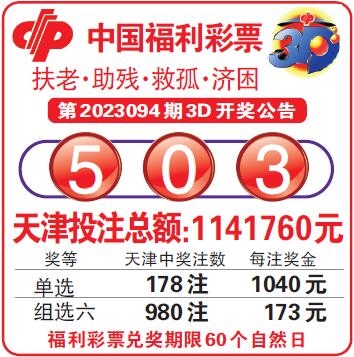 中国福利彩票第2023094期3D开奖公告