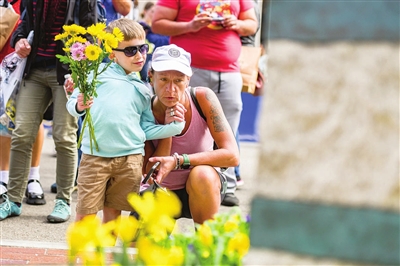 当日是美国波士顿马拉松赛爆炸十周年,爆炸案遇难者家属在波士顿出席了纪念仪式。2013年4月15日,波士顿国际马拉松比赛终点线附近发生爆炸,造成3人遇害、260多人受伤,震惊美国社会。 新华社发