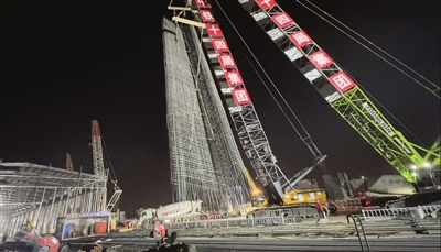 本报讯(记者 万红)昨天,记者从中铁十四局集团有限公司京滨铁路五标了解到,随着2台分别重150吨、260吨的履带吊轰鸣作业,京滨城际铁路天津机场隧道4号始发井最后一幅地连墙日前顺利起吊入槽并成功浇筑,标志着4号始发井地连墙施工全部完成,后续将进入深基坑开挖及主体结构施工阶段,为隧道工程建设创造有利条件。