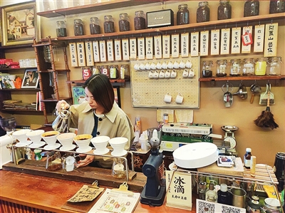 配方豆是彬岛咖啡的主打特色产品。大多咖啡店的手冲咖啡是单一咖啡豆制作的,而这里很多手冲咖啡是由3种至6种豆子调配成的混合咖啡粉制作的。“我在跟客人聊天的时候,会知道客人对豆子的风味偏好,然后按照客人的喜好进行调配,口感更饱满也更富有层次。”苏圣宇说,目前店里有5种配方豆的手冲咖啡,其销量占比超7成。
