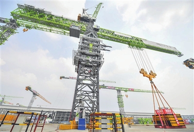 当日,中联重科R20000-720塔式起重机在位于湖南省常德市鼎城区的中联重科建筑起重机工业园下线并交付。该起重机最大起重量720吨,最大起升高度400米,主要应用于重大工程建设领域。 新华社发