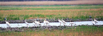 昨天上午,我市七里海湿地工作人员观测到一个由15只白鹤组成的鹤群,数量创天津历年之最。白鹤是国家一级保护动物,属极濒危物种。