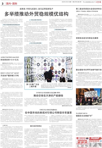 孙玉喜的感受也体现在一季度的数据上──1.26亿元“津乐购”消费券累计拉动38.23亿元消费,撬动比达1:31;汽车消费明显回暖,限额以上单位零售额同比增长6.1%,此外,新能源汽车增幅达到55%。
