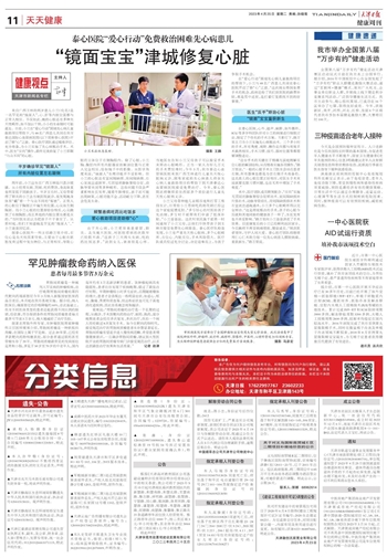 由于先心病,小兰更容易患感冒、肺炎。去当地大医院、村医院看病的次数早已经数不清。“这孩子三天两头生病,吃的药比饭还多。”谈到女儿,爸爸很是心疼。当地医生告知小兰父母孩子可以接受手术来矫治心脏畸形。正当一家人为好几万元的手术费犯难时,今年3月,我市泰达心血管病医院来到广西玉林进行儿童先天性心脏病义诊,困难家庭的先心病患儿将在先心病儿童救助项目的帮助下到天津泰达心血管病医院接受免费治疗。今年,泰心医院还将继续前往西部多个省份进行儿童先天性心脏病义诊。