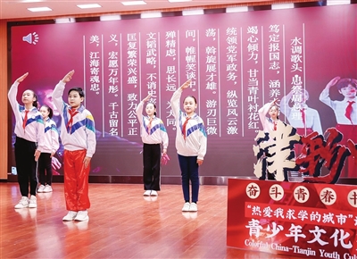 启动仪式上,与会领导来宾与小学生代表共同摁下了“津彩中国”青少年文化交流活动的启动键,预示着青少年们的奇思妙想和创新主张将赋能天津特色地域文化以活力朝气,交流碰撞出的火花将彰显出津卫文化的独特韵味。随后,河西区上海道小学6名学生进行了文艺展演。精彩的展演不仅体现了跨文化、跨学科之间的交流,更表达了学生对历史英雄的勾画理解以及对英雄精神的敬慕和传承。