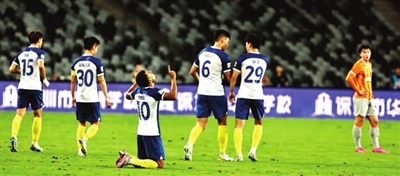比赛进入下半时,深圳队频繁换人,力求保持场上球员的充沛体能,为进攻创造机会,反观津门虎队,则有意识地稍微收缩防线,争取控制局面、稳固防守,并陆续换人保持防守力度。对比上半时,下半时比赛在过程方面略显胶着和凌乱,不过除了阿奇姆彭有一脚射门击中门楣弹出,深圳队基本没有其他有威胁的攻势,最终津门虎队2:0顺利取得本场比赛的胜利。