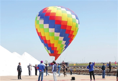 市民走进天津盐业风情游览区,观赏春日盐田的丰收美景,感受浓浓的海盐气息。