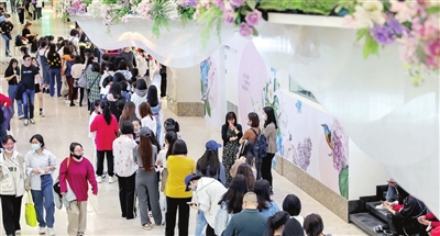 “五一”期间,我市不少商圈、景区纷纷上新,引来大流量,充分释放消费新活力。图为位于南开区的一大型商场内人头攒动,尤其是不少新店外顾客排起长队。本报记者 吴迪 摄