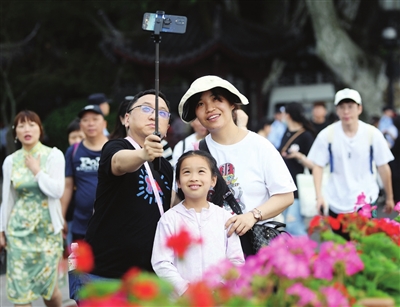 3日,游客在杭州西湖断桥自拍留影。本组图片 新华社发