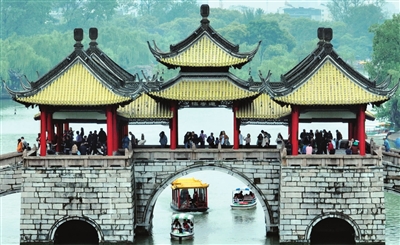 3日,游客在江苏扬州瘦西湖风景区游玩。