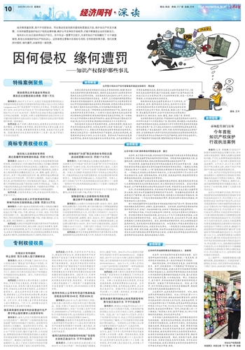 每年的4月26日是世界知识产权日。在今年这一重要节日前夕,天津市知识产权局曝光了10个典型案例,彰显出加强保护知识产权的决心。这些案例主要集中在商标专用权、专利权侵权等方面。他们究竟因何侵权、缘何遭罚,本报带您一探究竟。