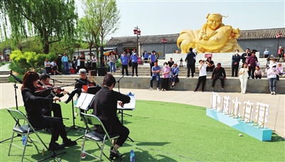 本报讯(记者 翟志鹏 摄影 姚文生)昨日,天津交响乐团“晨歌弦乐四重奏”走进杨柳青古镇,为市民与游客送上一台精彩的古典音乐会。