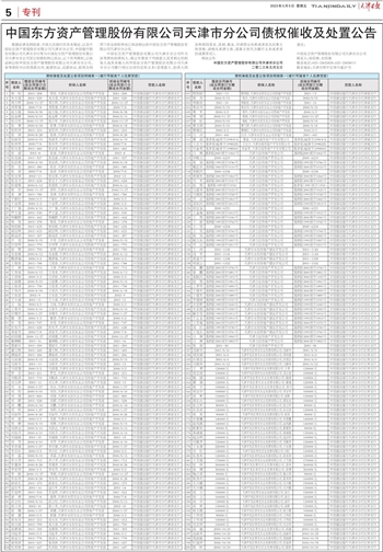 中国东方资产管理股份有限公司天津市分公司债权催收及处置公告 2023年05月05日