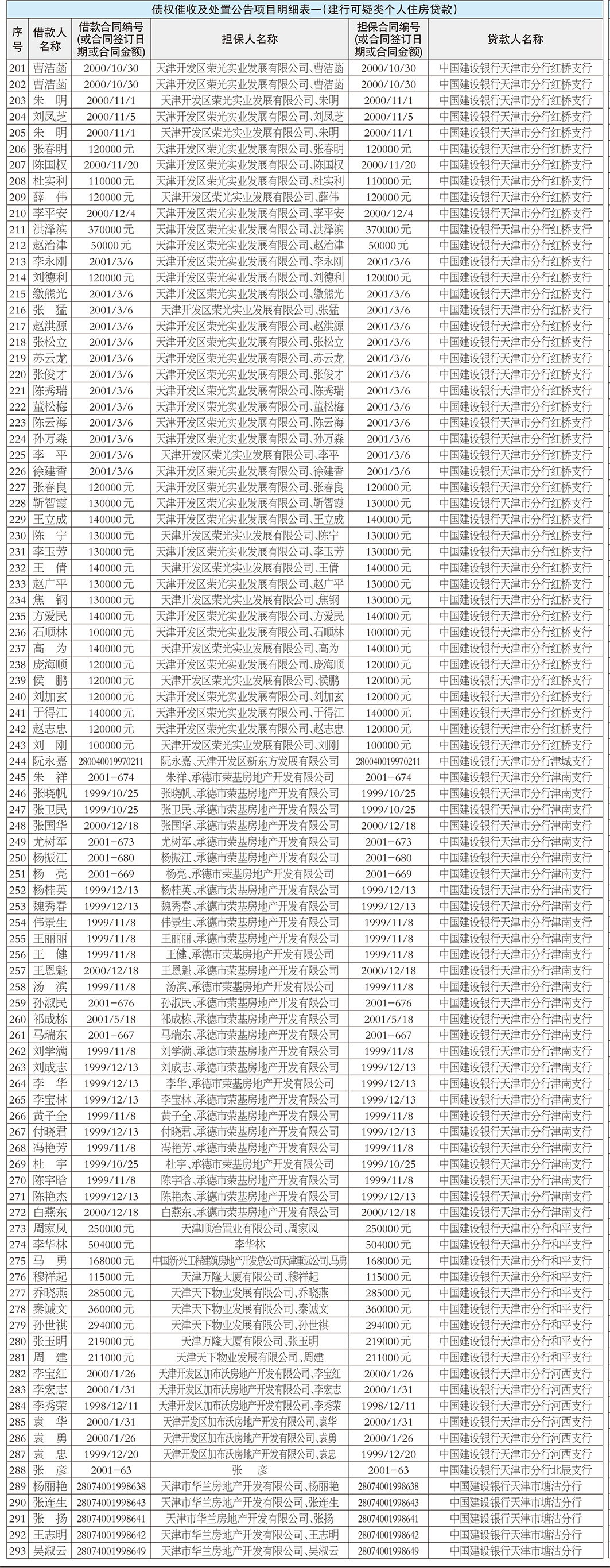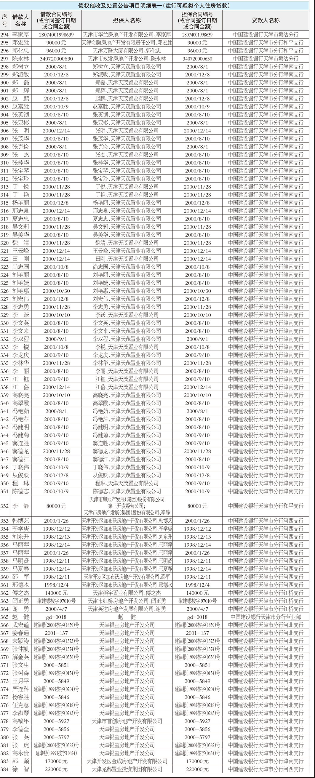 中国东方资产管理股份有限公司天津市分公司作为该等债权的债权人,现公告要求下列借款人及其相应的担保人或其承继人向中国东方资产管理股份有限公司天津市分公司履行相应合同约定的义务(若借款人、担保人因各种原因更名、改制、歇业、吊销营业执照或者丧失民事主体资格,请相关承债主体、清算主体代为履行义务或者承担清算责任)。