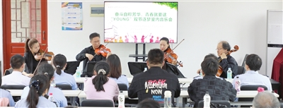 本报讯(记者 翟志鹏 摄影 姚文生)5月4日,天津交响乐团“悠扬四重奏”走进河西区福至里社区,为社区及相关单位的青年工作者送上一台“双节筑梦室内音乐会”。