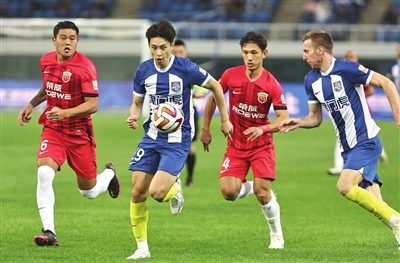 本报讯(记者 顾颖 摄影 崔跃勇)昨天晚上,天津津门虎队在“水滴”面对中超领头羊上海海港队,打出了一场非常精彩的比赛,虽然最终双方0:0战平,但是津门虎队整场表现有目共睹。上海海港队主教练哈维尔赛后说,这对他们而言是一场非常艰难的比赛,没有失球、取得1分,也是一种收获。